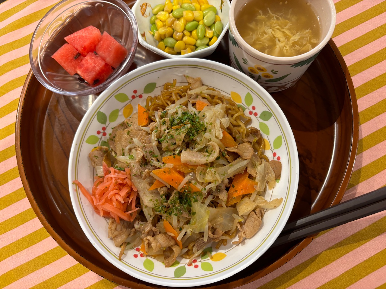 本日は誠心園の夏祭りでした。昼食にはソース焼きそばなど夏祭りらしい食事を提供しました。