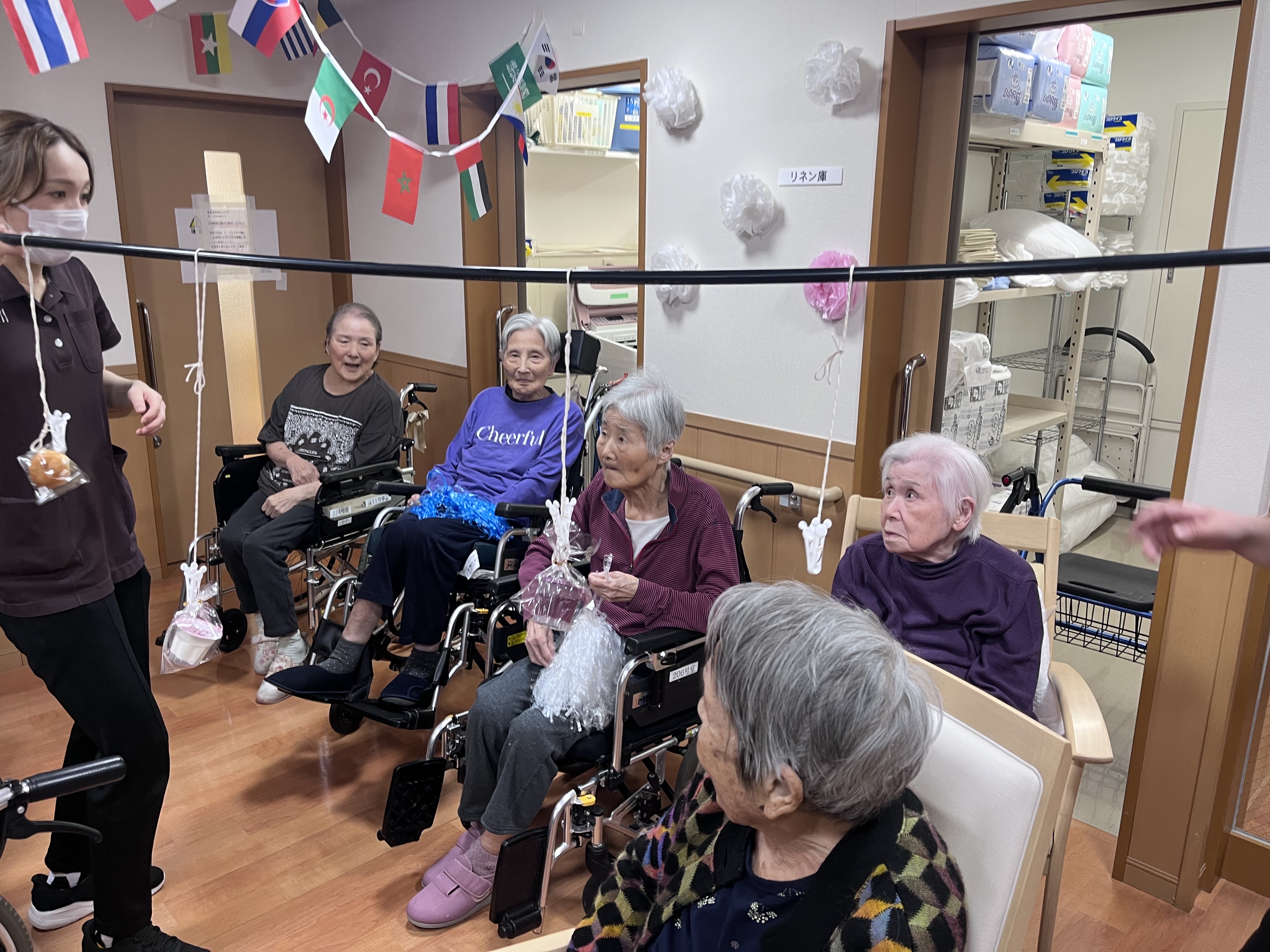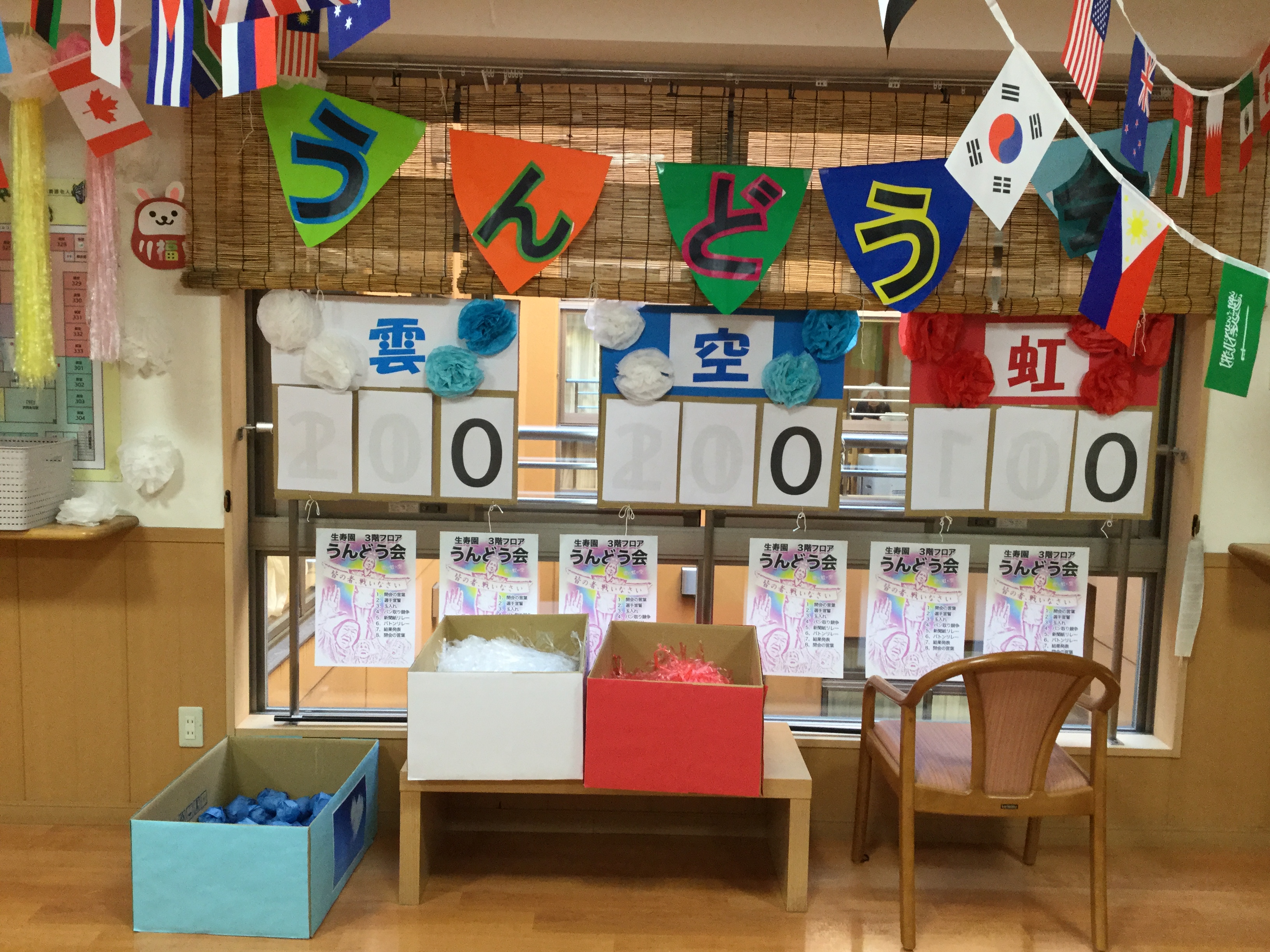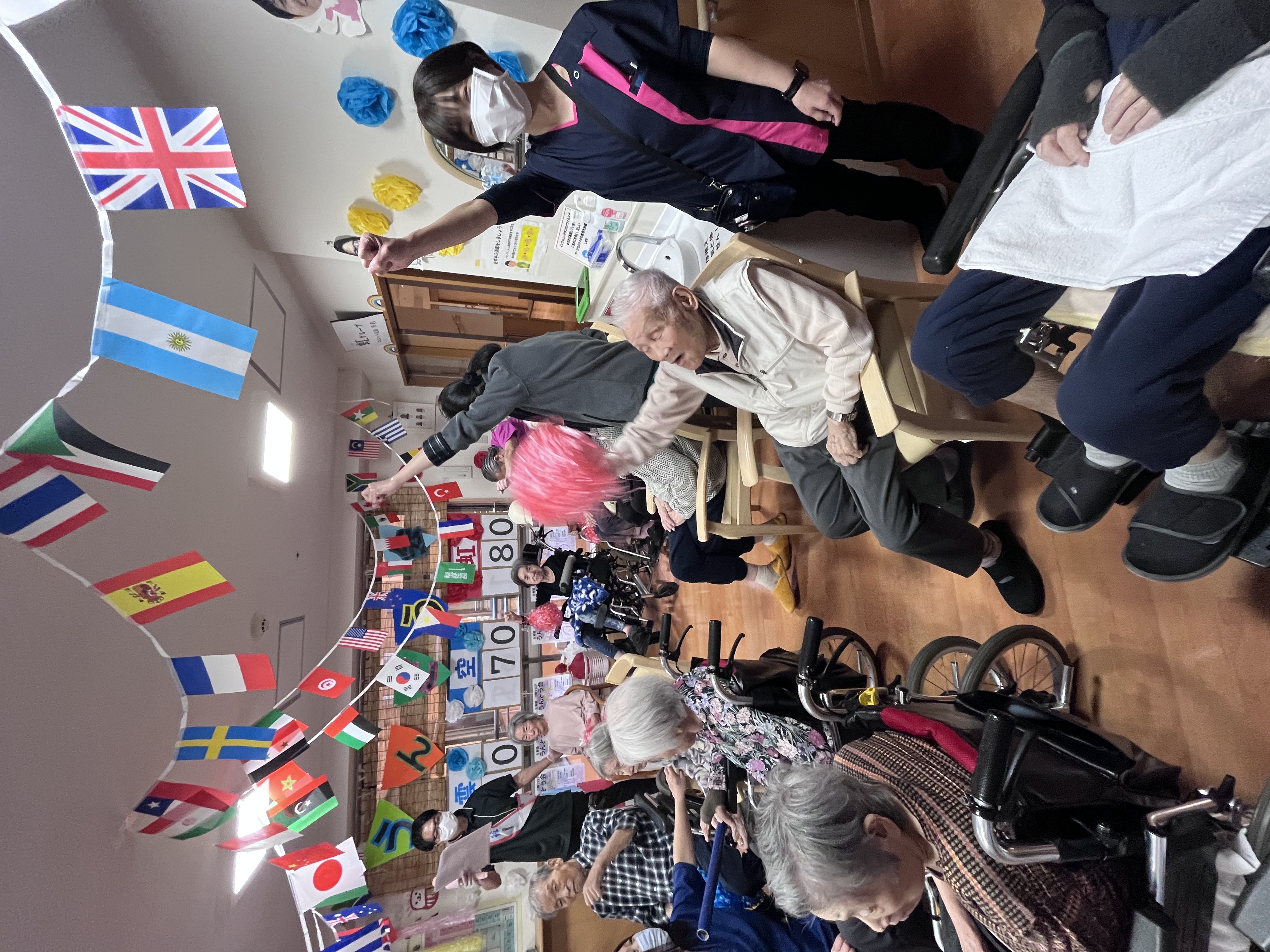 生寿園11月の出来事です。3階では合同で運動会の開催。ショートステイや4階では職員さんが飾りを作ってくれました。